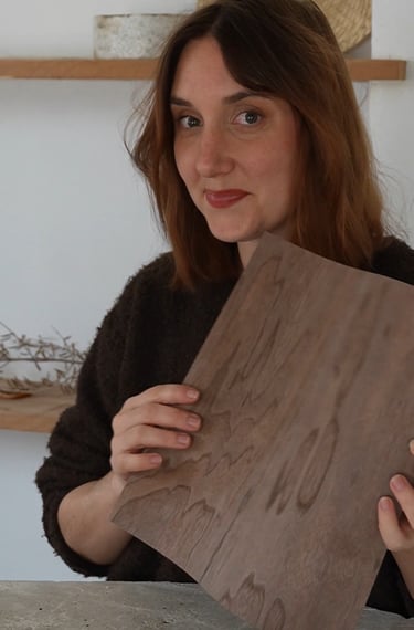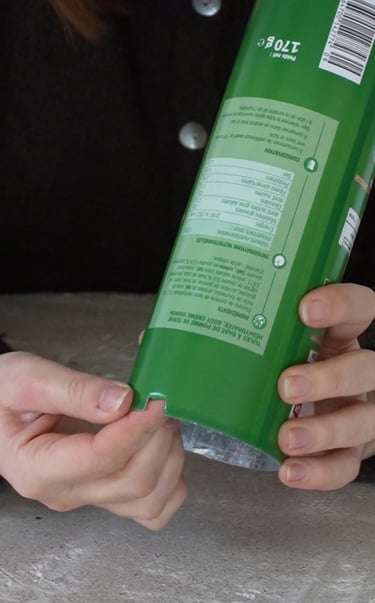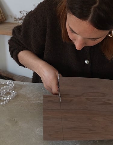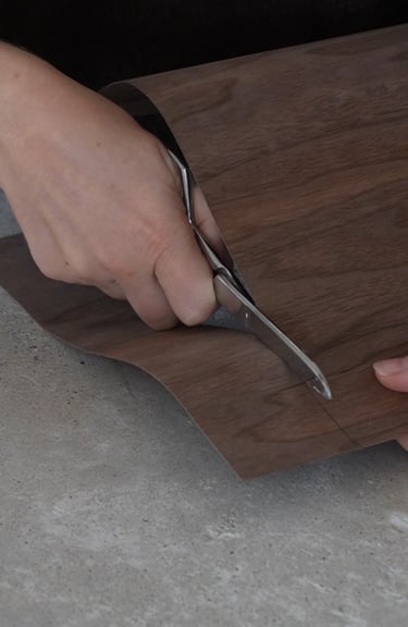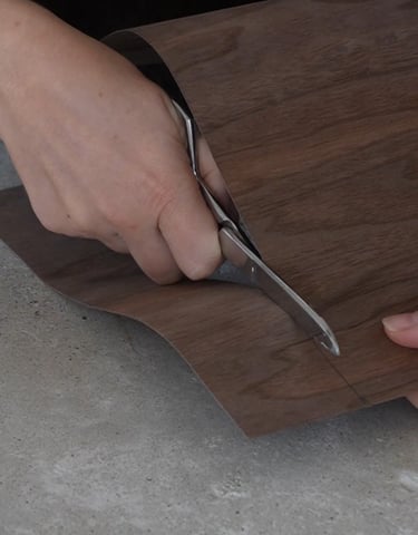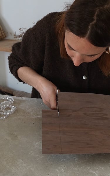 Ensuite je viens enrouler du placage bois autour de mon paquet de chip, je mesure la longueur dont j'ai besoin pour faire le tour. Je marque cette longueur et je découpe mon placage en fonction.