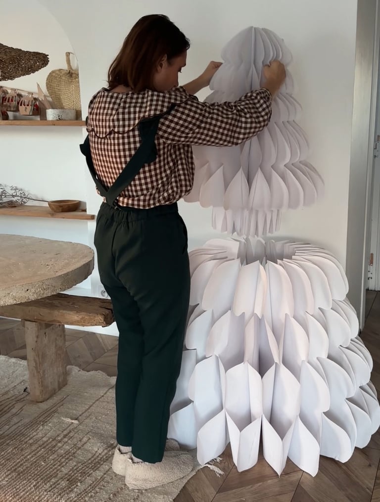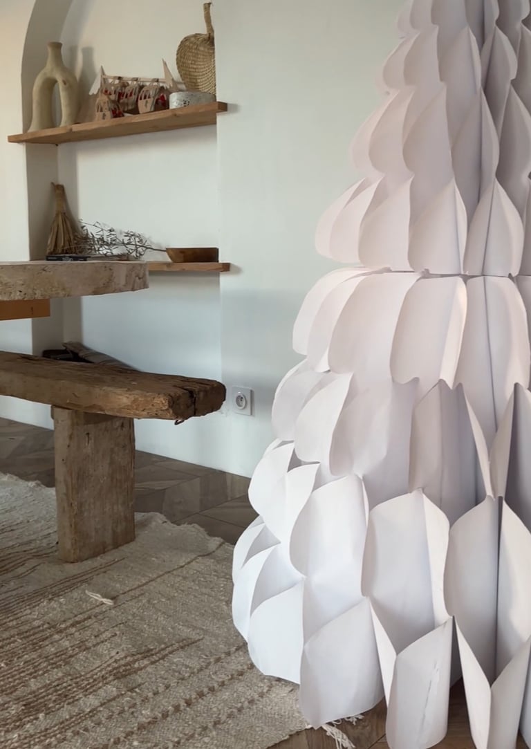 Gros crush sur la tendance des sapins en papier mais voila ce n'est pas vraiment donné ... Du coup je vous propose qu'on tente de créer le notre, à la taille que l'on souhaite et pour moi cher ! C'est parti ! Attention coup de foudre assuré pour ce sapin en papier et le mieux c'est qu'on va pouvoir le ressortir chaque année !