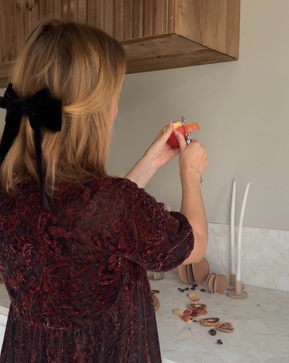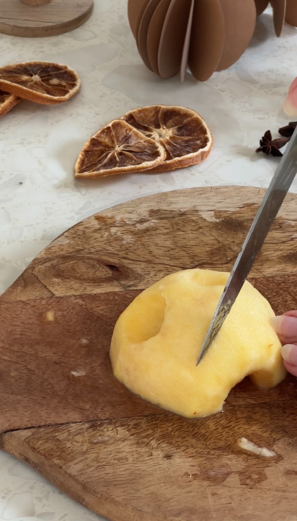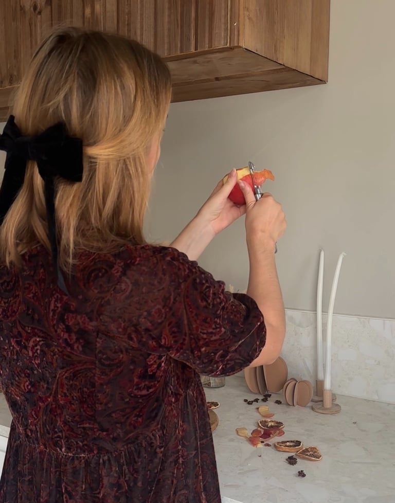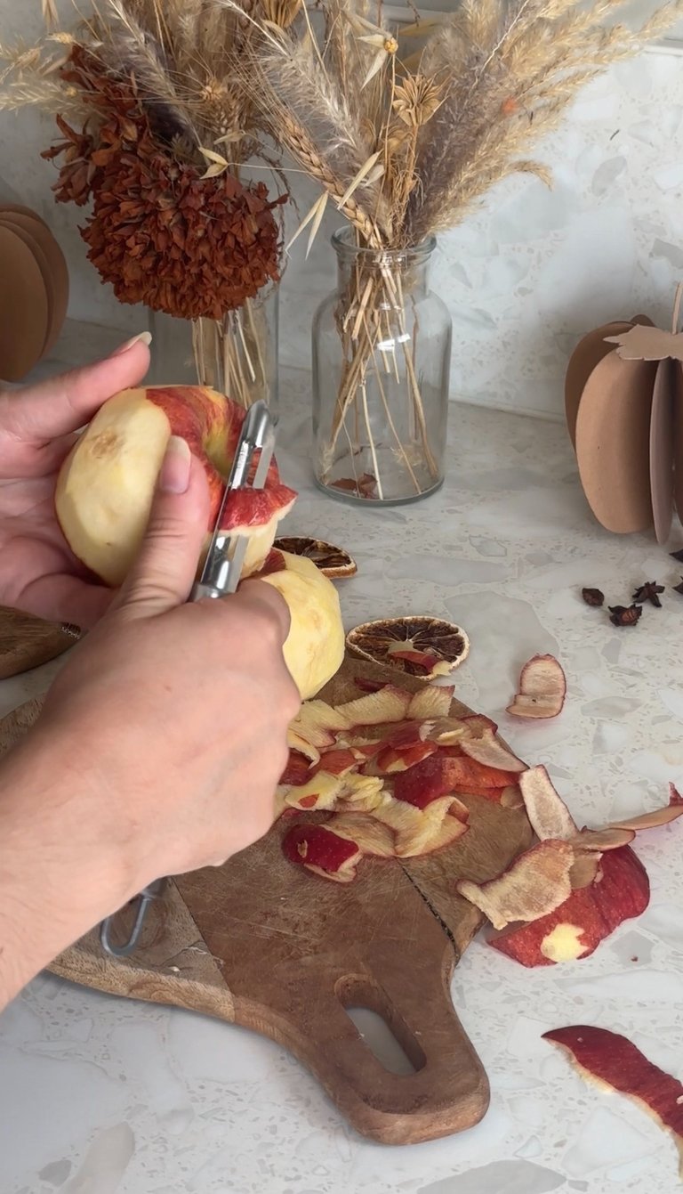 On commence par préchauffer le four à 90°, puis on pèle et on coupe les pommes en deux.