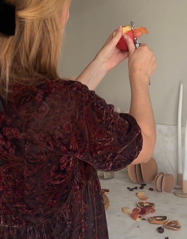 On peut par exemple former un sourire édenté, un nez en forme de triangle une tête de squelette... Pour les yeux j’ai utilisé une petite cuillère et je suis venue tourner pour faire deux trous le plus rond possible.