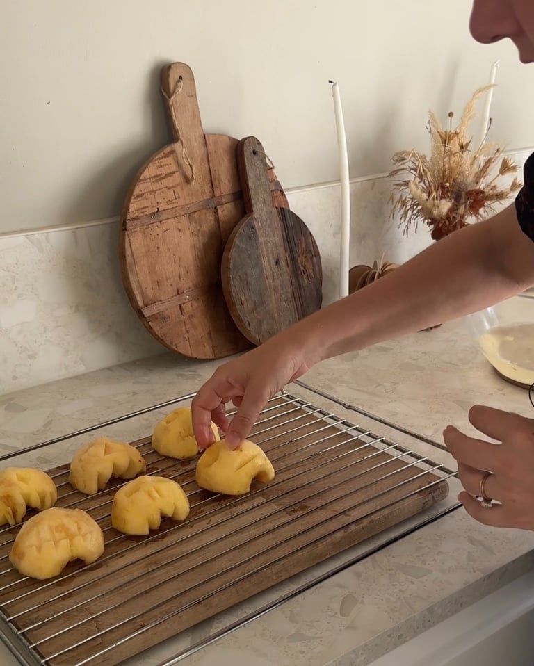 On enfourne les pommes sur une grille de cuisson. J’ai laissé mes pommes au four pendant 2h en venant contrôler de temps en temps. Le but étant d’attendre qu’elles deviennent fripées !